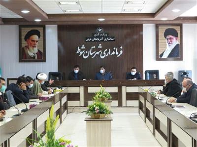 جلسه کارگروه اجتماعی ،فرهنگی ،سلامت زنان و خانواده شهرستان شوط - با دستور کار بررسی مسایل و مشکلات و نیازهای جوانان - راهکارهای حمایت از توسعه تولید و مصرف محصولات سالم با حضور فرماندار،معاون ،بخشداران و اعضای کارگروه در محل فرمانداری برگزار شد