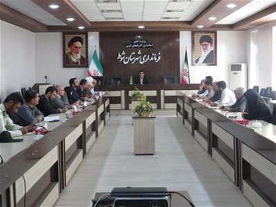 به گزارش روابط عمومی فرمانداری شوط:جلسه هماهنگی گرامیداشت برنامه های هفته قوه قضاییه به ریاست فرماندار و با حضور امام جمعه،رییس دادگستری و روسای ادارات در محل فرمانداری برگزار شد. در ادامه جلسه برنامه های به شرح ذیل مصوب شد: 1. غبار روبی مزار شهدا همراه با زیارت عاشورا 2.دیدار های اداری 3. برگزاری میز خدمت از طرف دادگستری در نماز جمعه این هفته 4. بازدید از کارخانجات ای که نیاز به همراهی و همکاری دادگستری را دارند 5. برگزاری یادواره شهدای هفتم تیر 6. و برنامه های متعدد دیگر