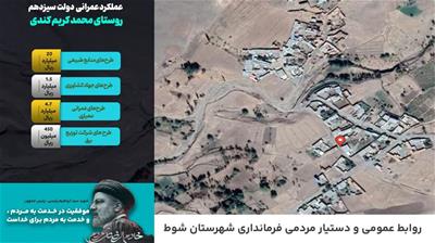 روابط عمومی فرمانداری با همکاری دستیار مردمی فرمانداری شهرستان شوط در قالب عکس نوشته ، عملکرد سه ساله دولت سیزدهم را در روستاهای شهرستان شوط را تهیه و منتشر کرد .