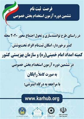 اطلاعیه:ششمین دوره آزمون استخدامی بخش خصوصی ادارات کمیته امداد امام ره و بهزیستی