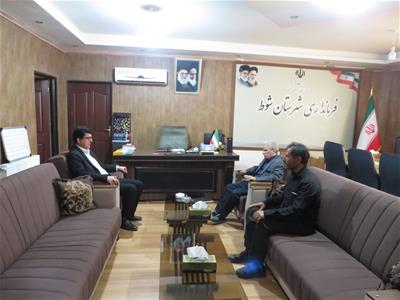 به گزرش روابط عمومی فرمانداری شوط : شهروز بابازاده فرماندار شوط بمناسبت گرامیداشت هفته ملی مهارت با رییس و کارکنان مرکز فنی و حرفه ای شهرستان شوط دیدار و از زحمات آنها در این مرکز جهت ارایه خدمات به شهروندان تقدیر و تشکر نمود