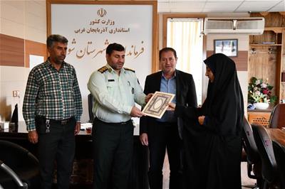 سرهنگ قلی زاده، فرمانده نیروی انتظامی شهرستان شوط بمناسبت هفته عفاف و حجاب از صبوری ، مسئول امور بانوان فرمانداری شوط تجلیل کرد .