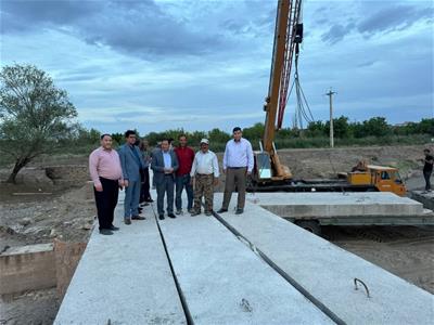 شهروز بابازاده فرماندار شوط با همراهی معاون فرماندار و جمعی از اهالی روستا از مرحله نصب دال های بتنی پل روستای تپه باشی نماز بازدید کرد .