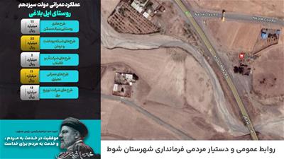 روابط عمومی فرمانداری با همکاری دستیار مردمی فرمانداری شهرستان شوط در قالب عکس نوشته ، عملکرد سه ساله دولت سیزدهم را در روستاهای شهرستان شوط را تهیه و منتشر کرد .