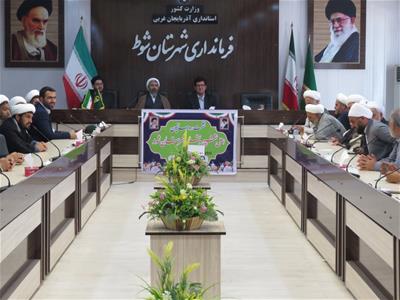 بمناسبت گرامیداشت دهه ولایت وامامت، نشست هم اندیشی علما و روحانیون اهل تشییع و تسنن شهرستان شوط با حضورفرماندار، امام جمعه،فرماندهان نظامی و انتظامی روسای مرکز بزرگ اسلامی،تبلیغات اسلامی،ارشاد اسلامی و جمعی از روحانیون شیعه و سنی در محل فرمانداری برگزار شد.