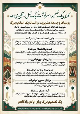 نخبگان، بزرگان، معتمدین محلی و سران تیرههای عشایری نقشی تعیینکننده در هدایت، انسجام اجتماعی و توسعه پایدار روستاها دارند و میتوانند با حضور مسئولانه، آیندهی آبادیها را رقم بزنند.