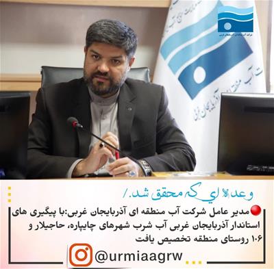 مدیر عامل شرکت آب منطقه ای آذربایجان غربی گفت: با پیگیری های استاندار آذربایجان غربی و برگزاری جلسه ایشان با رئیس حوضه آبریز ارس شرکت مدیریت منابع آب ایران، آب شرب شهرهای چایپاره، حاجیلار و 106 روستای منطقه تخصیص یافت.
