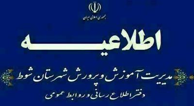 به منظور پیشگیری از شیوع بیماری کرونا ، ستاد مقابله با کرونای شهرستان شوط آموزش حضوری مدارس را اعلام کرد