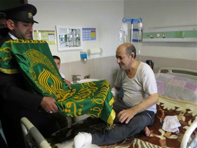 خادمین رضوی با در دست داشتن پرچم متبرک رضوی و با سرکشی از بخش های مختلف و عیادت از بیماران ضمن دلجوئی و آرزوی سلامت برای آنان با توزیع بسته های تبرکی بین بیماران و حضار این روز خجسته را گرامی داشتند.