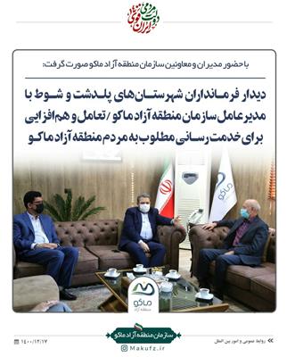 به گزارش روابط عمومی فرمانداری شوط: فرمانداران شهرستان های شوط و پلدشت با مدیرعامل سازمان منطقه آزاد ماکو دیدار نموده و در راستای خدمت رسانی مطلوب به مردم منطقه آزاد ماکو تعامل و هم افزایی نمودند.
