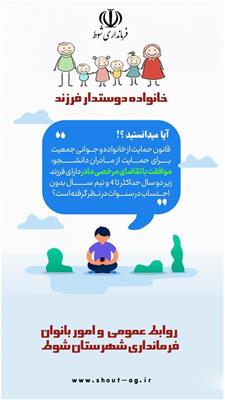 قانون حمایت از خانواده و جوانی جمعیت ، برای حمایت از مادران دانشجو : موافقت با تقاضای مرخصی مادر دارای فرزند زیر دوسال حداکثر تا 4 و نیم سال بدون احتساب در سنوات در نظر گرفته شده است .